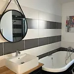 A fürdőszoba egyéb felszerelései magukba foglalják a külön WC-t, fürdőkádat és zuhanyzót.